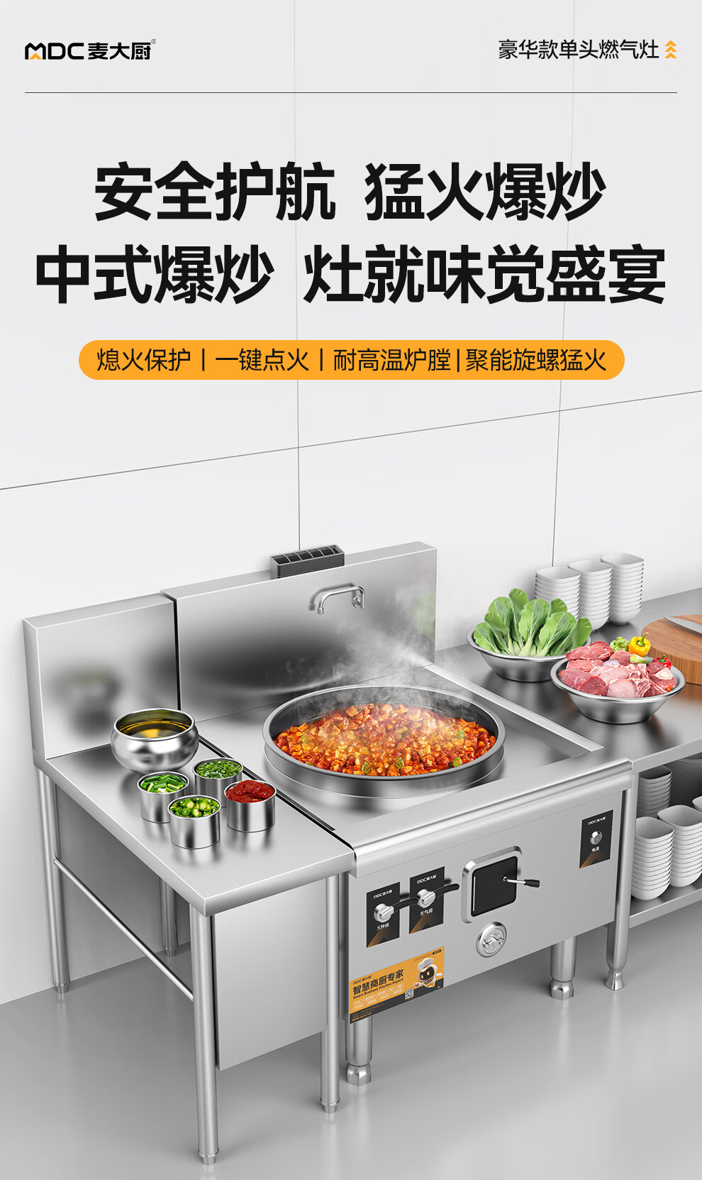 麥大廚燃?xì)饷突鸫箦佋詈廊A款燃?xì)鈫晤^大炒爐1000