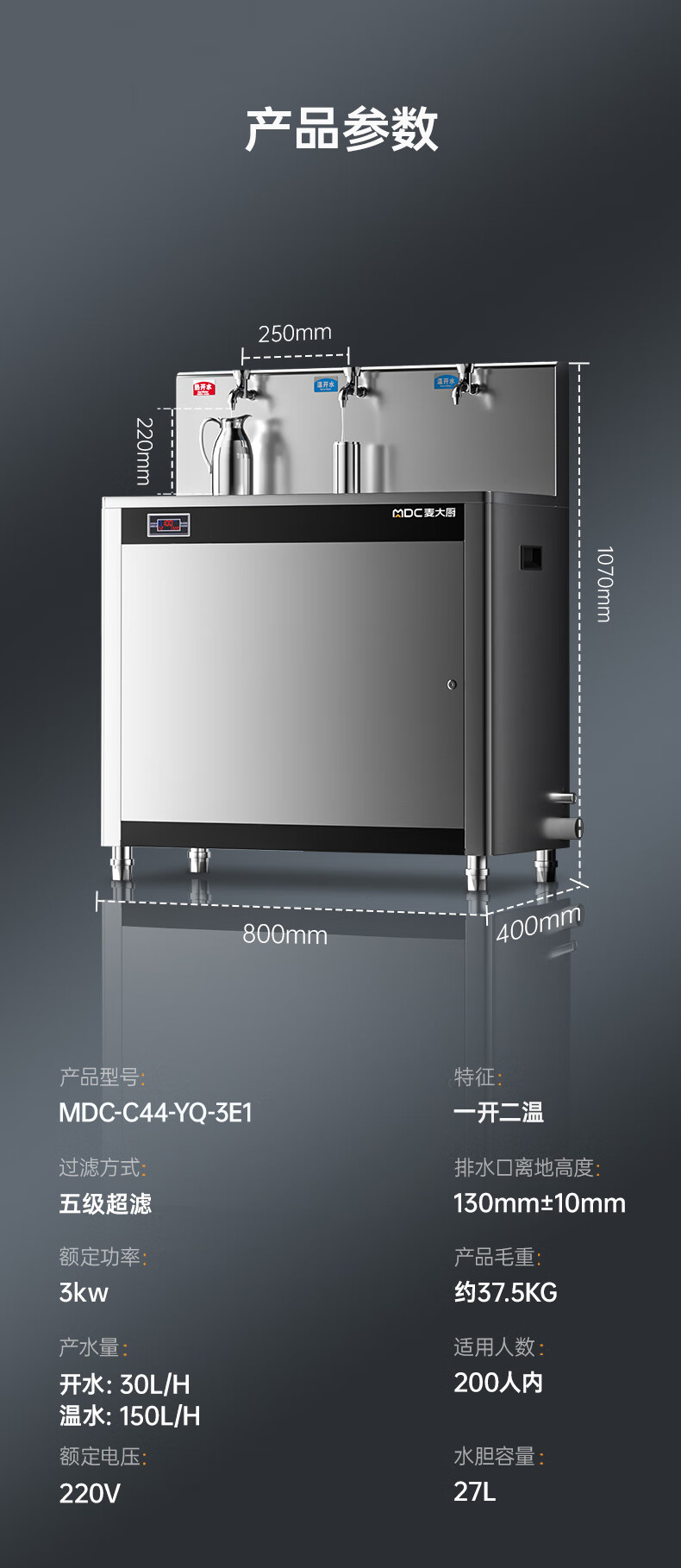 麥大廚3KW高背龍頭飲水機一開二溫快接五級超濾直飲機