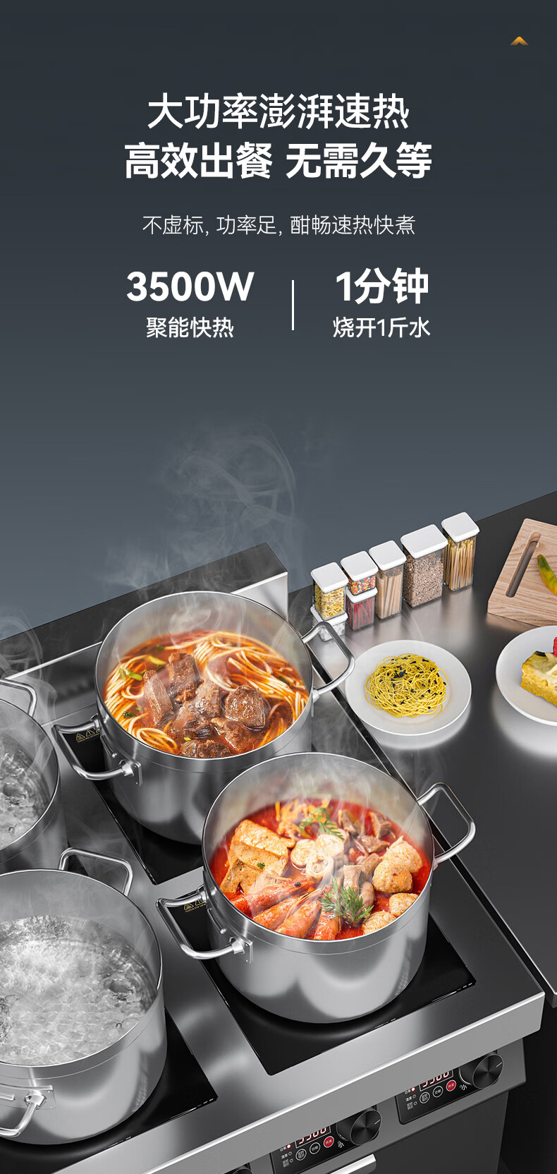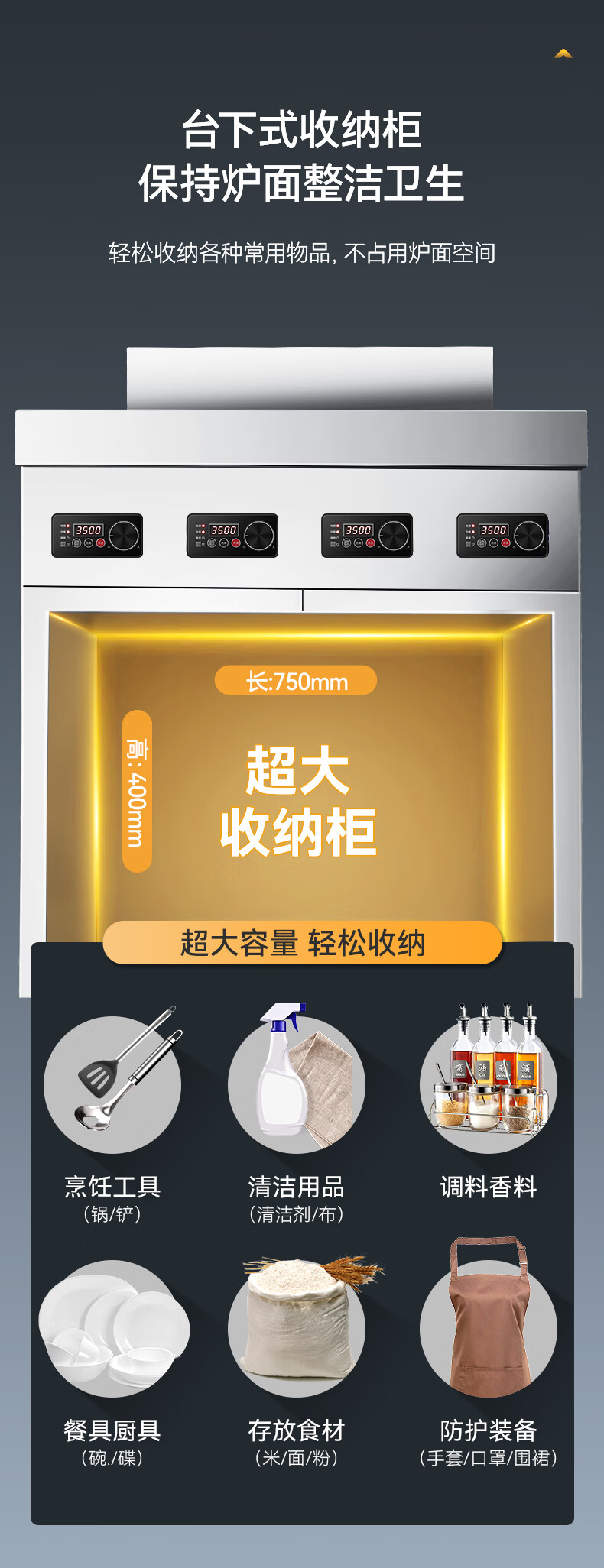 麥大廚商用多頭電磁爐旗艦款四頭柜式煲仔爐5KW