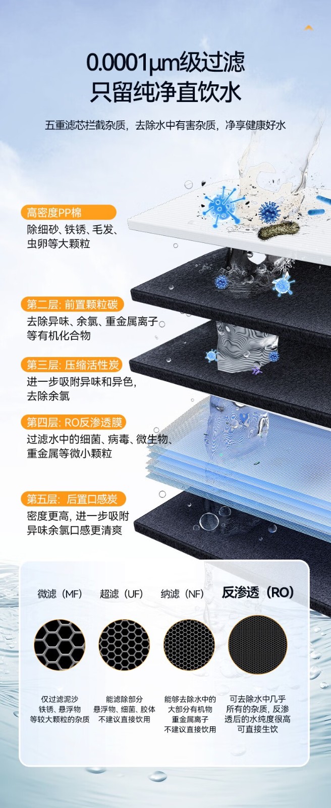 核心配置:五級RO400G+3.2G壓力桶
