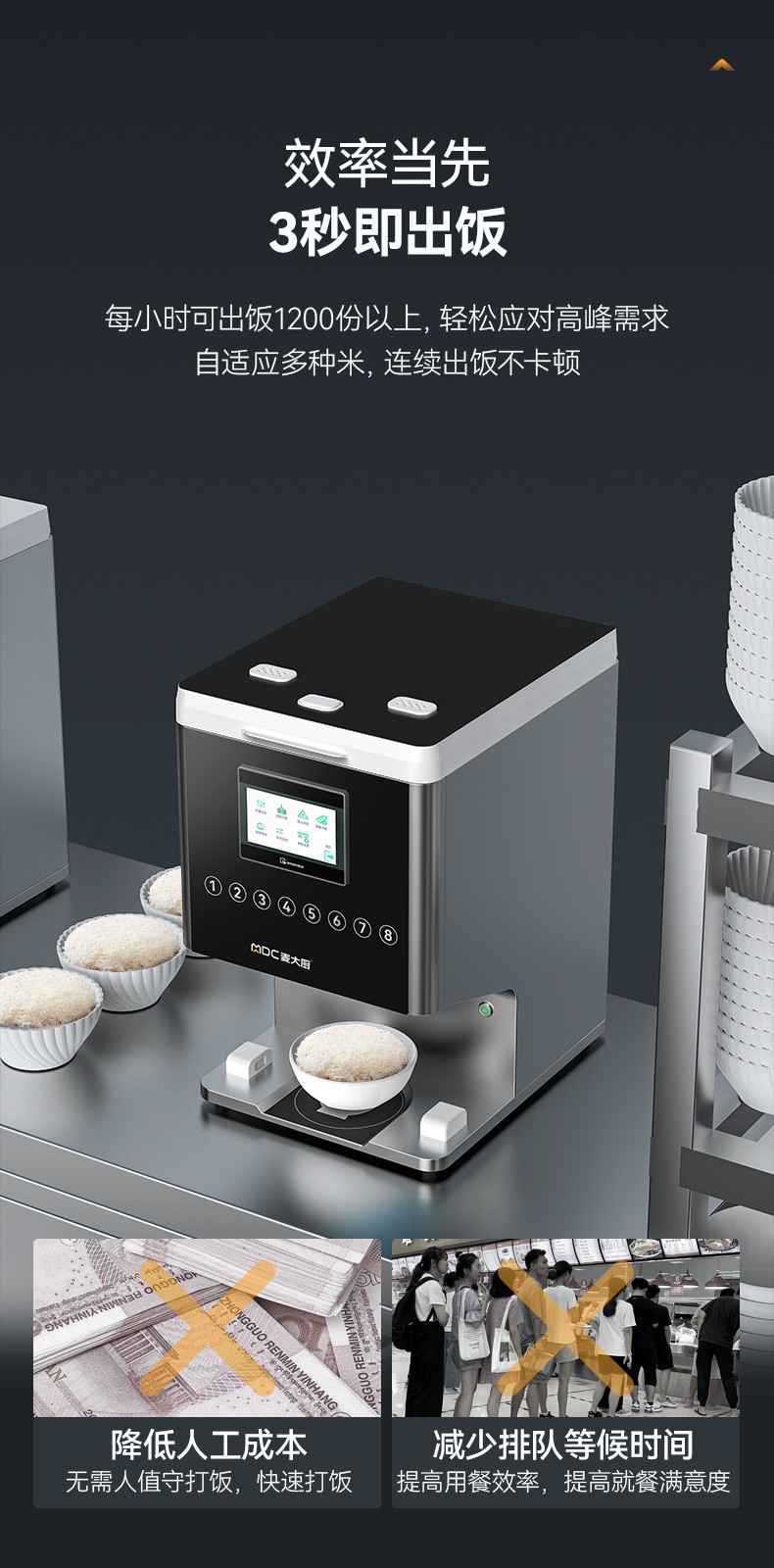 出飯效率:3秒/次,1200份/小時