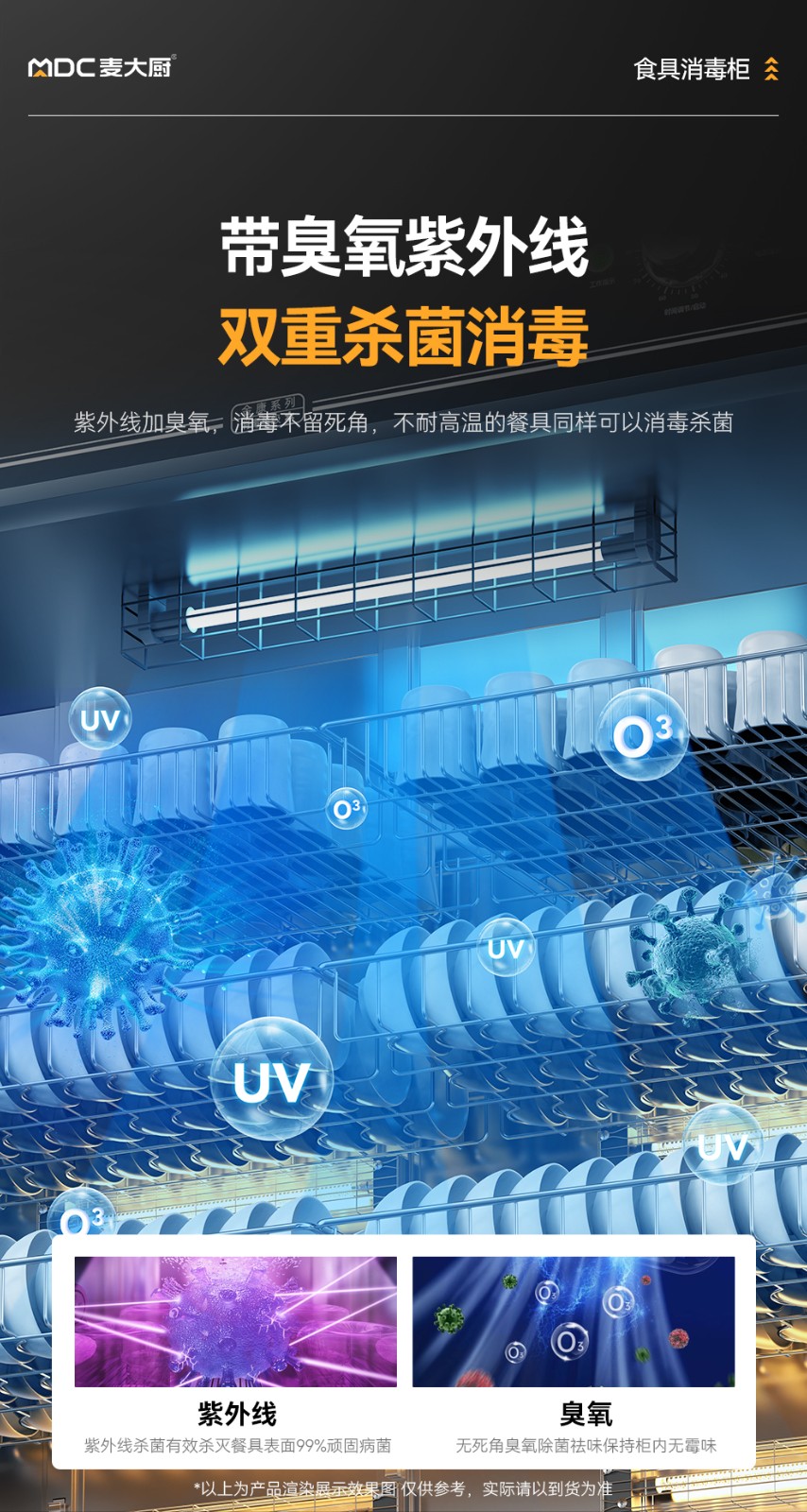 麥大廚豪華旋鈕型5層單門中溫食具消毒柜(臭氧+紫外線+熱風(fēng)循環(huán))950W