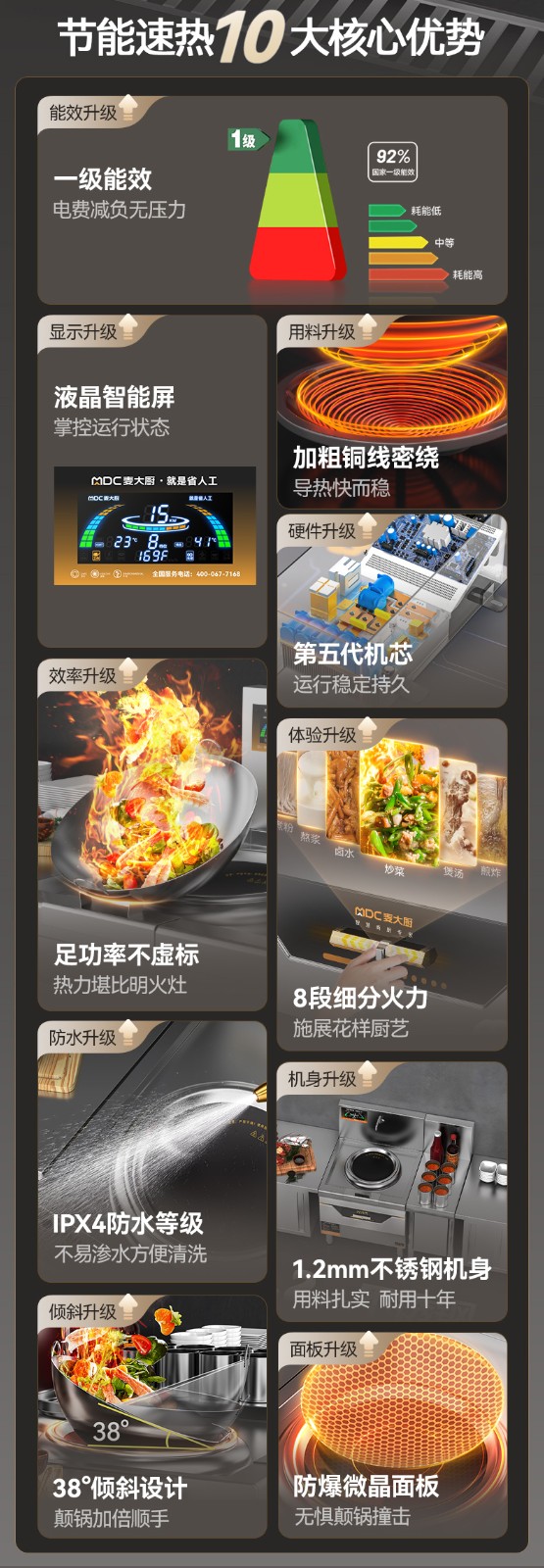 麥大廚旗艦款單頭無尾小炒爐8kw食堂大火力電磁灶商用