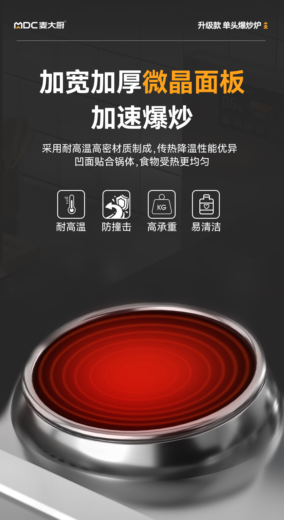 麥大廚食堂大火力電磁灶升級款單頭無尾小炒爐商用12kw