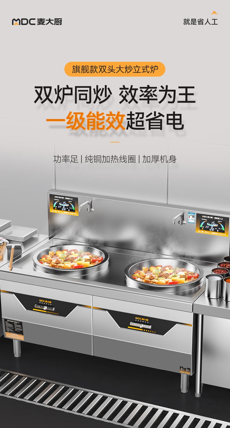 麥大廚學校食堂大炒鍋電磁爐旗艦款30KW雙頭飯店餐廳商用大炒爐