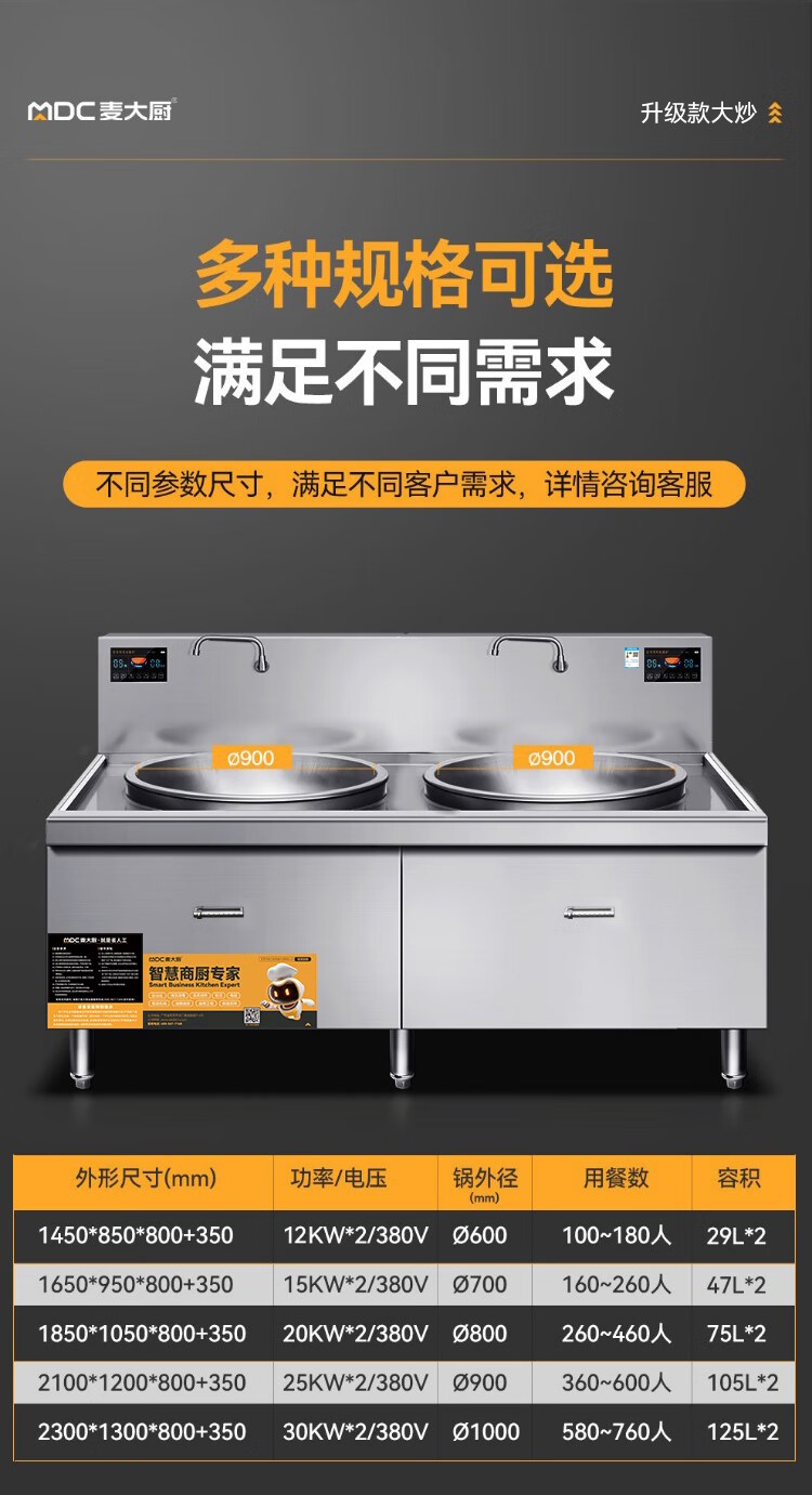 麥大廚大型大鍋灶電磁爐升級款25KW雙頭學校食堂大炒爐