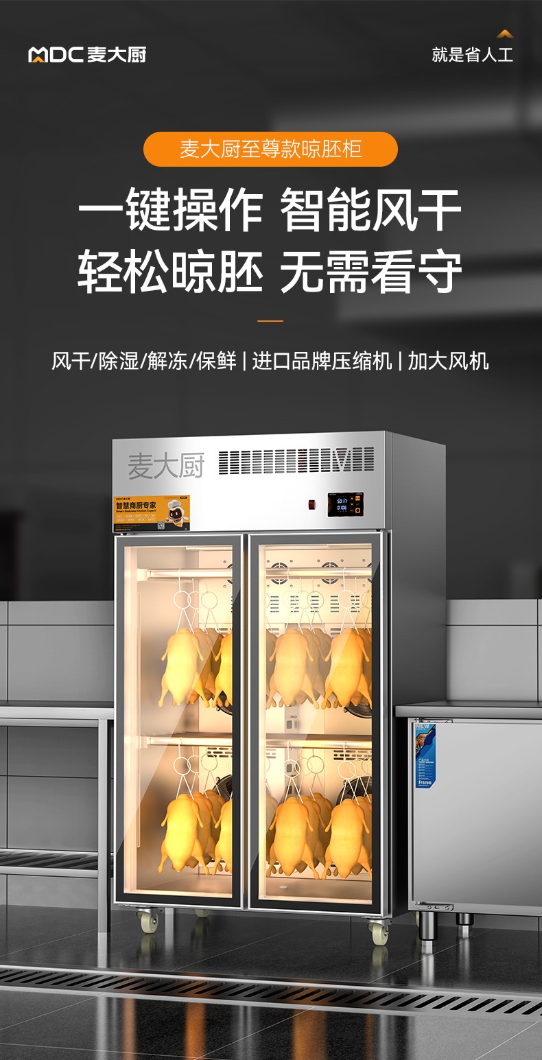 麥大廚商用晾胚柜節(jié)能至尊款1680W雙門(mén)烤鴨風(fēng)干柜