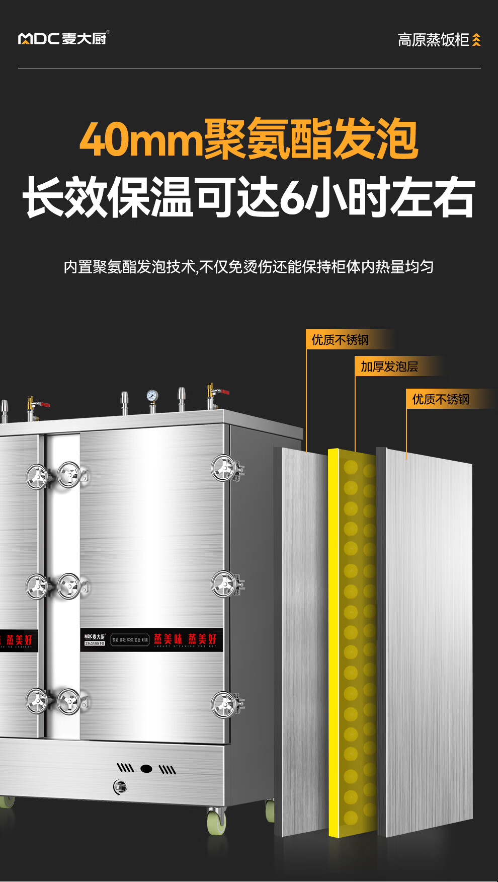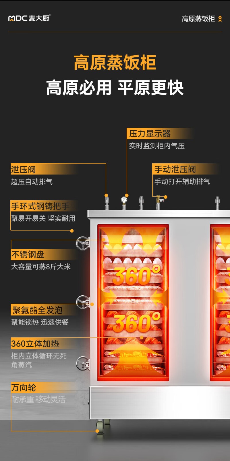 MDC商用高原蒸柜燃氣款40盤雙門蒸飯柜